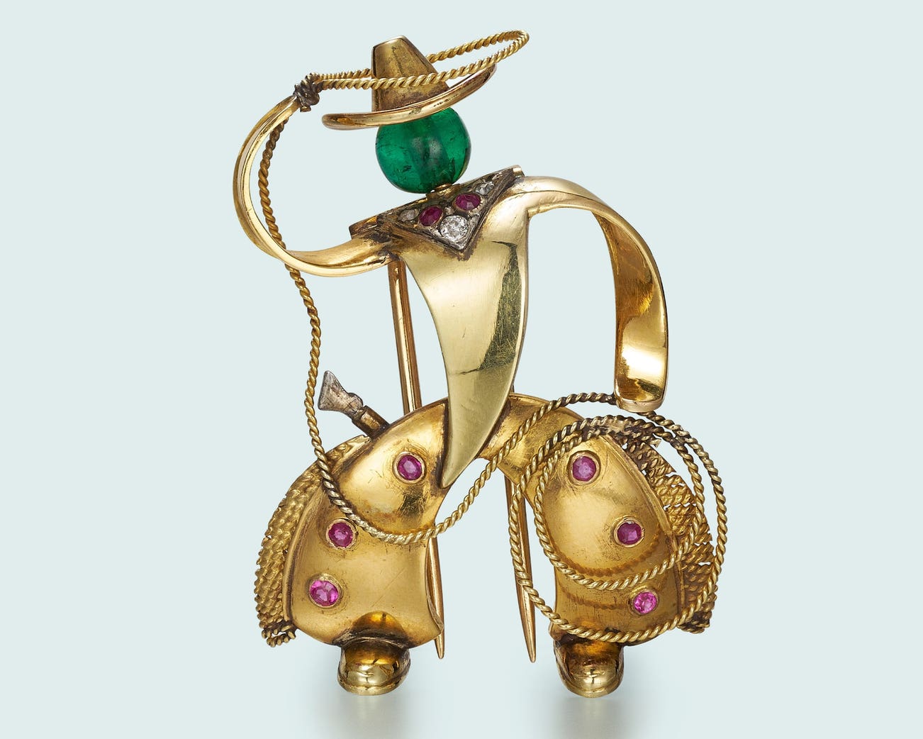 Emerald and diamond brooch
