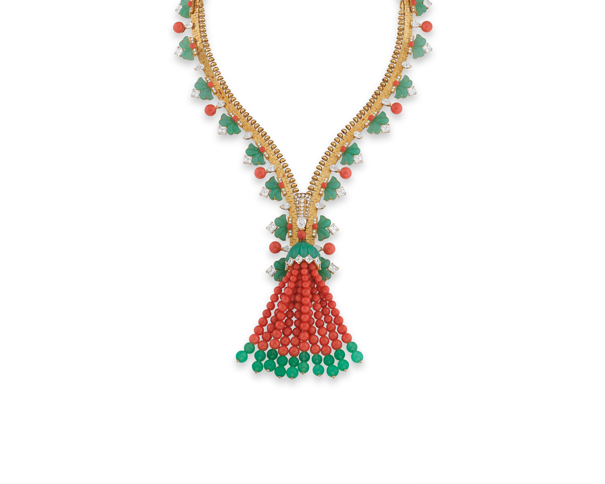 VAN CLEEF & ARPELS Coral, chrysoprase and diamond necklace/bracelet combination, 'Zip' CHF260,000–470,000