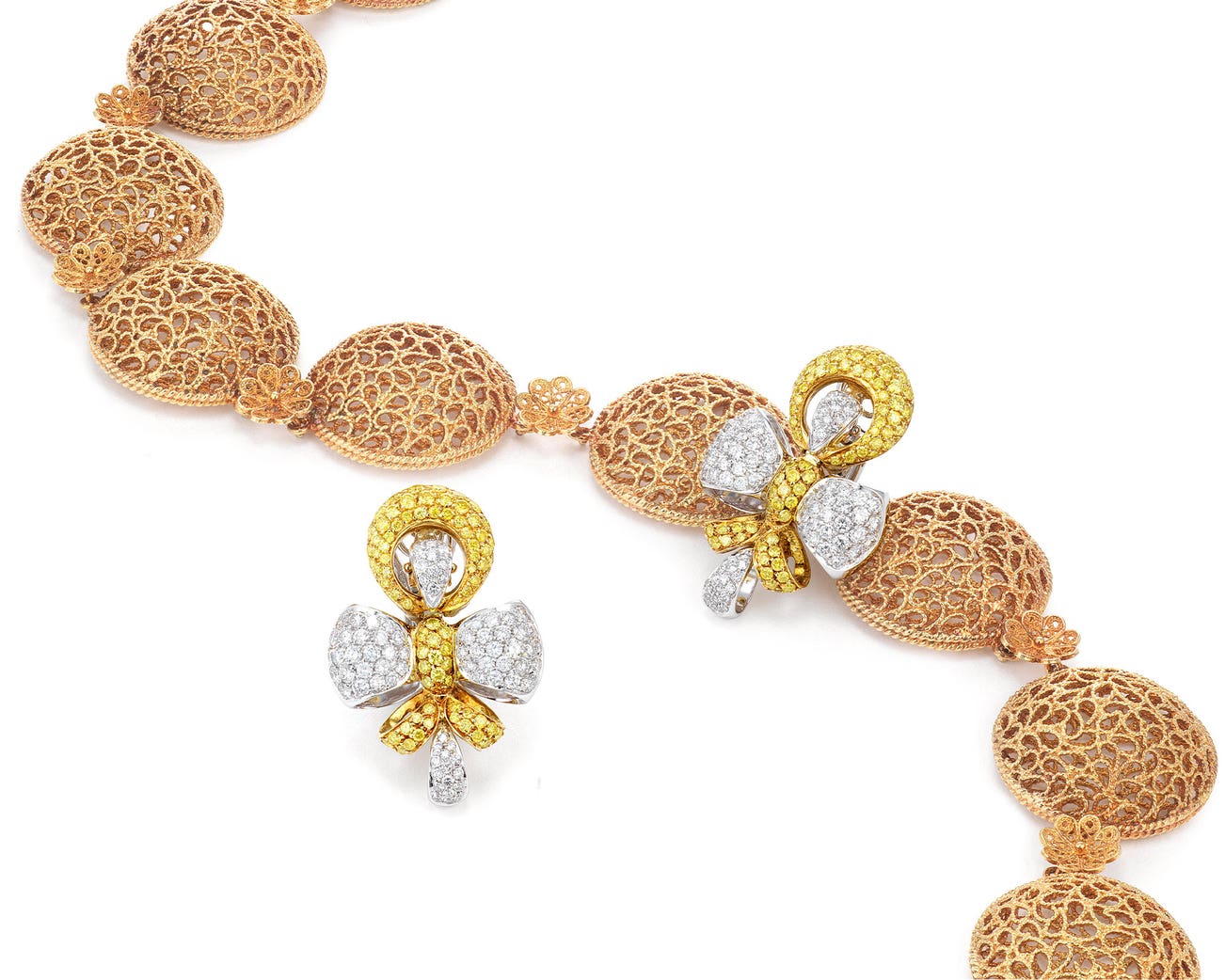 Pair of Fancy Yellow Diamond and Diamond Ear Pendants