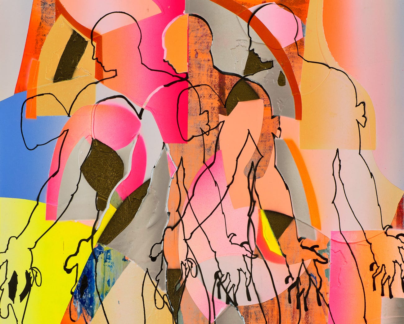 Five works: Holding Hands (Red, Orange, Yellow, Teal, Blue)