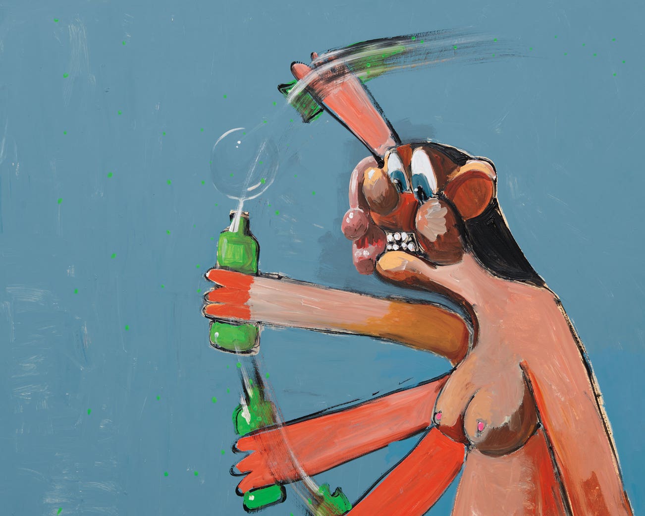 At once visually arresting and amusingly alarming, 'Nude Homeless Drinker' from 1999 is a striking example of Condo's portrayals of psychological disturbance.