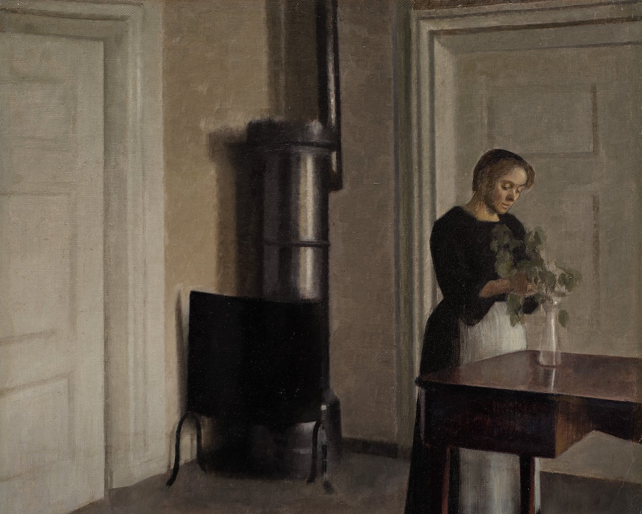 VILHELM HAMMERSHØI Interior of Woman Placing Branches in Vase on Table, £1,500,000–2,000,000