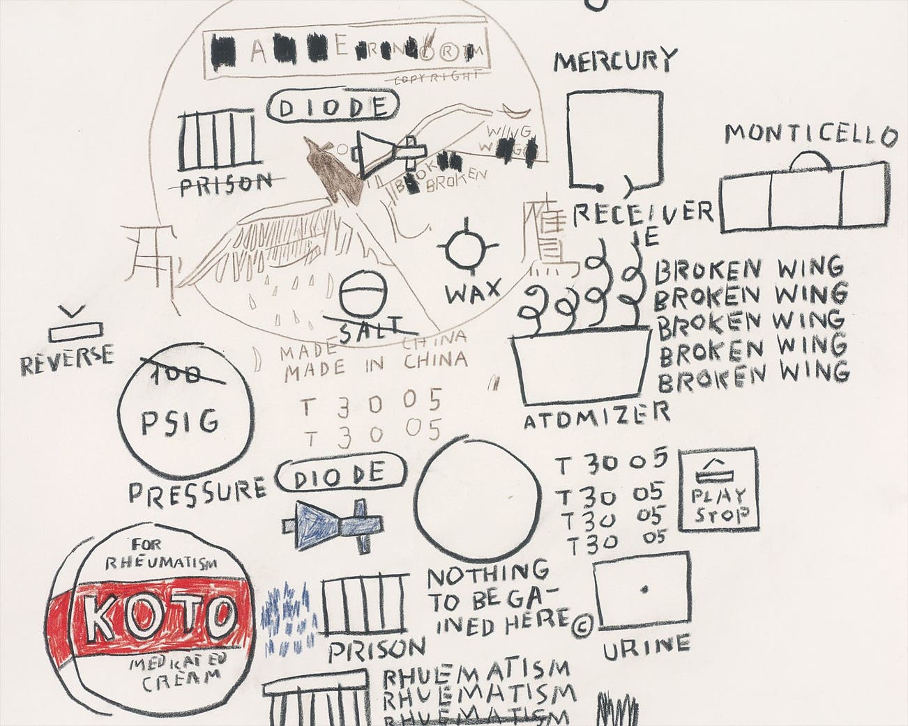 Two Works: Studio Wall Drawings (i) Asymmetric Objection (with rusty gasoline drum); (ii) Collaboration with the artist Ray Cooke-Working with Light and Auto DR 2