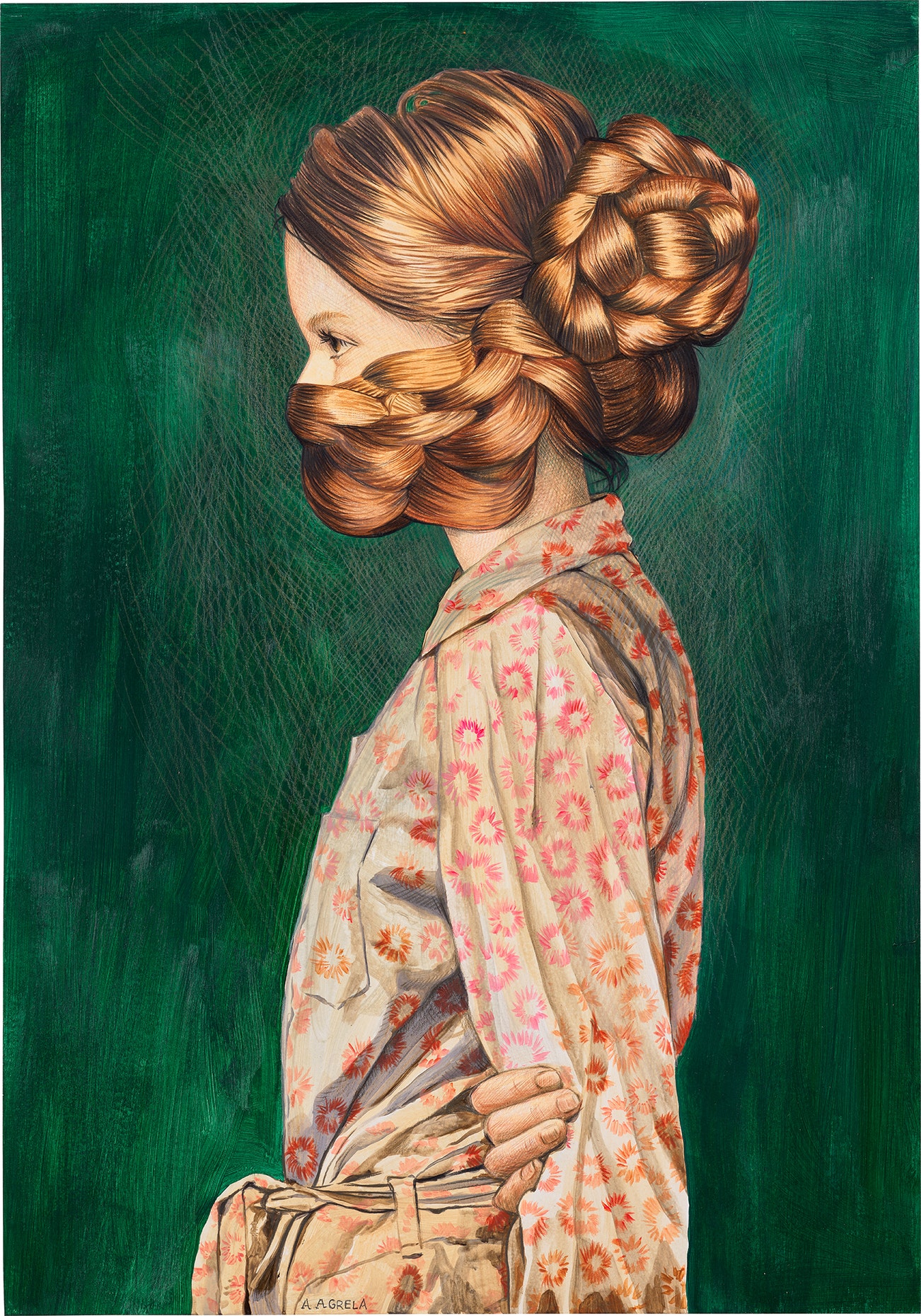 signed "A. AGRELA" lower left; signed and dated "A. AGRELA 2018" on the reverse