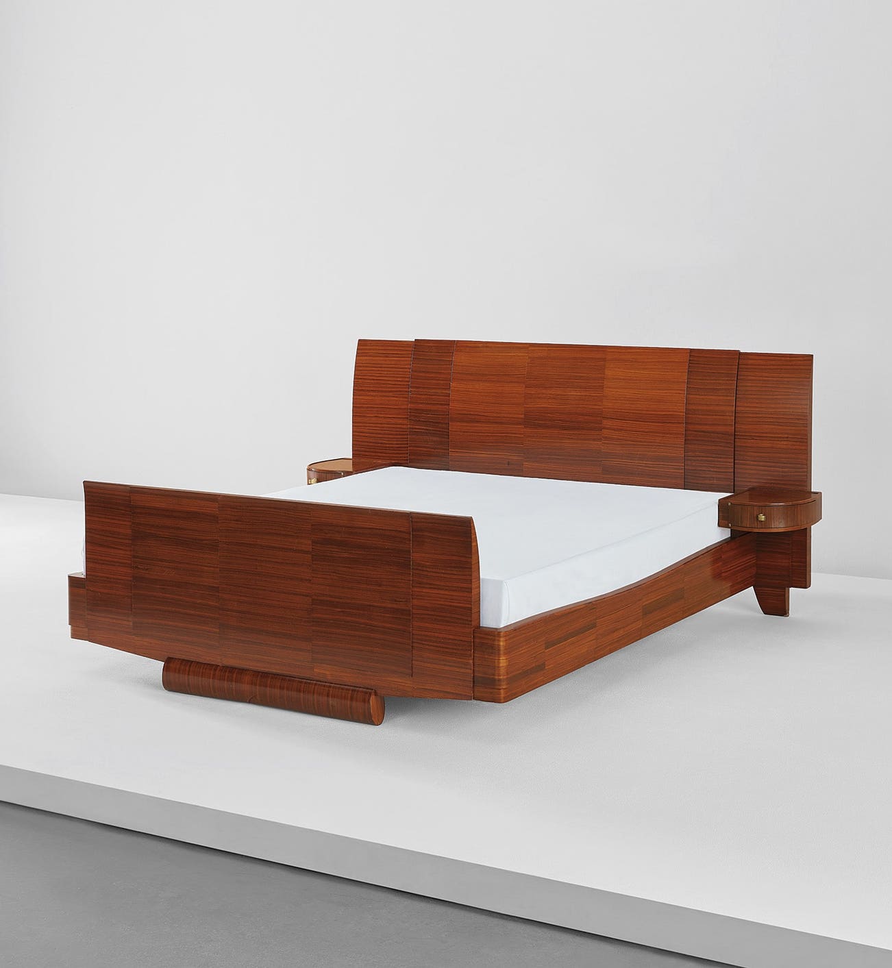 The drawing for the present model bed is recorded in the reference album “Sièges, lits, guéridons, tables” (inventory number 2002.18.12) held by the Ruhlmann Archives at the Musée des Années Trente, Boulogne Billancourt, Paris.