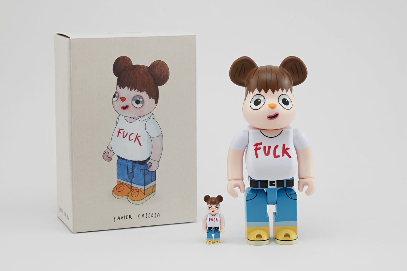 stamped with the fabricator logos 'MEDICOM TOY BE@RBRICK' on the underside; further signed and dated '2018 Javi Calleja' on the reverse of the box