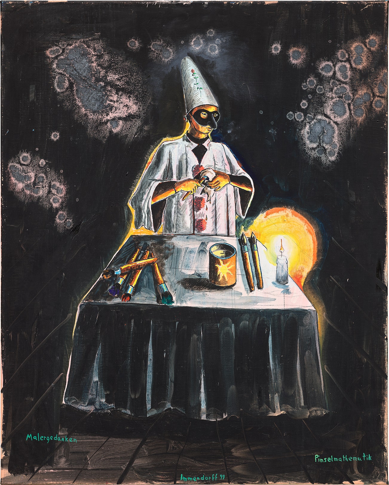 signed, titled and dated "Malergedanken Immendorff 99 Pinselmathematik" lower edge