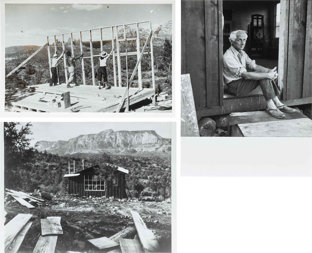 Three Works: (i) Max Ernst und Dorothea Tanning beim Bau des Holzhauses, Sedona, Arizona, 1946; (ii) Max Ernst vor der Tür Holzhauses, Sedona, Arizona, 1947; (iii) Das fertiggestellte Holzhaus, Sedona, Arizona, 1947, Sedona, Arizona