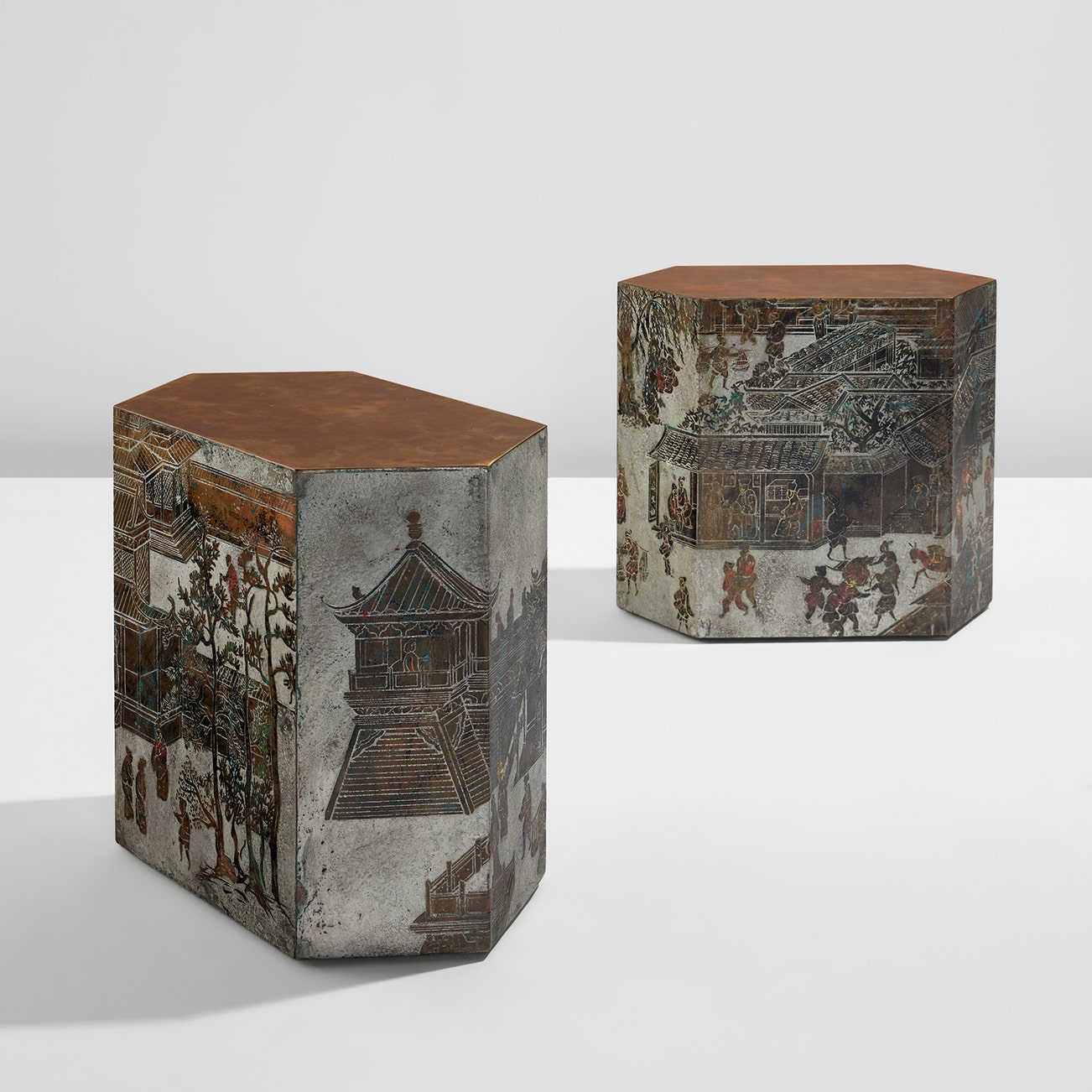 Top of one table and side of the other incised Kelvin Philip LaVerne.