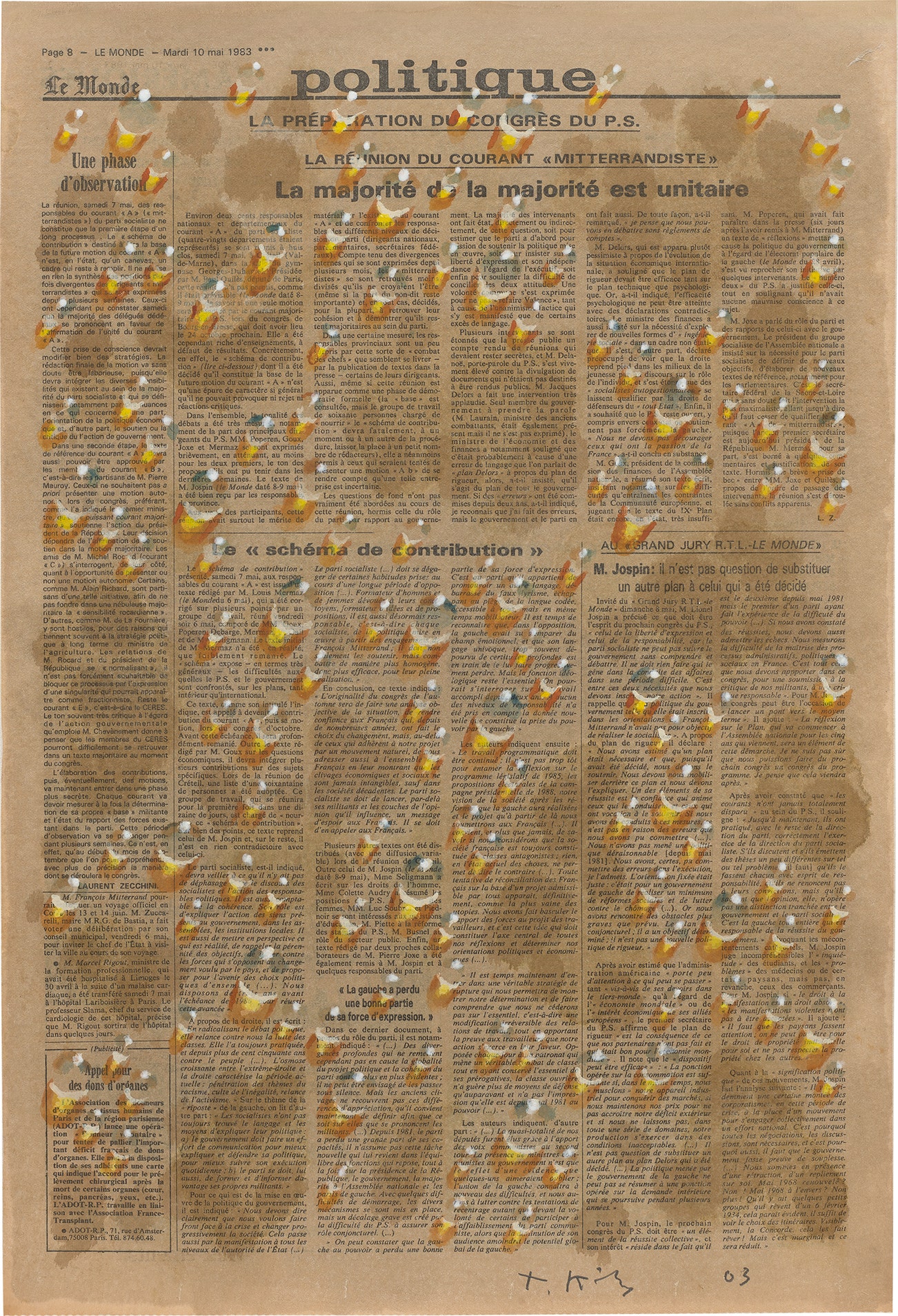 acrylic and Indian ink on newspaper laid on paper