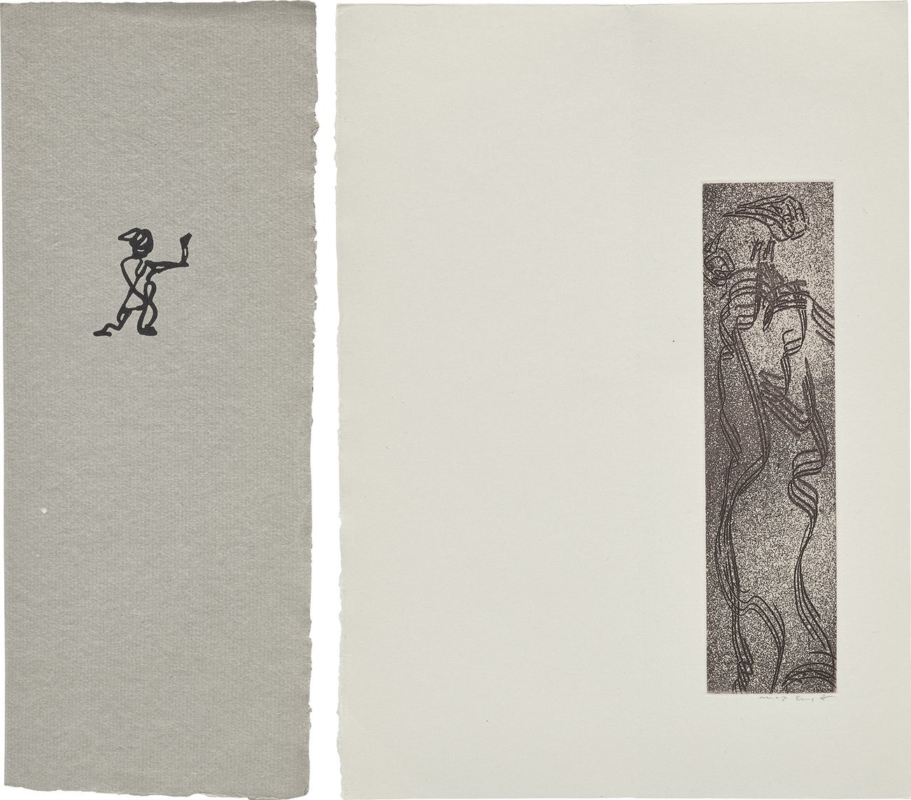signed 'Max Ernst' lower right of the etching and aquatint; numbered '61/70 1 AP' on an end page of the brochure and numbered '61/70' upper right of the envelope