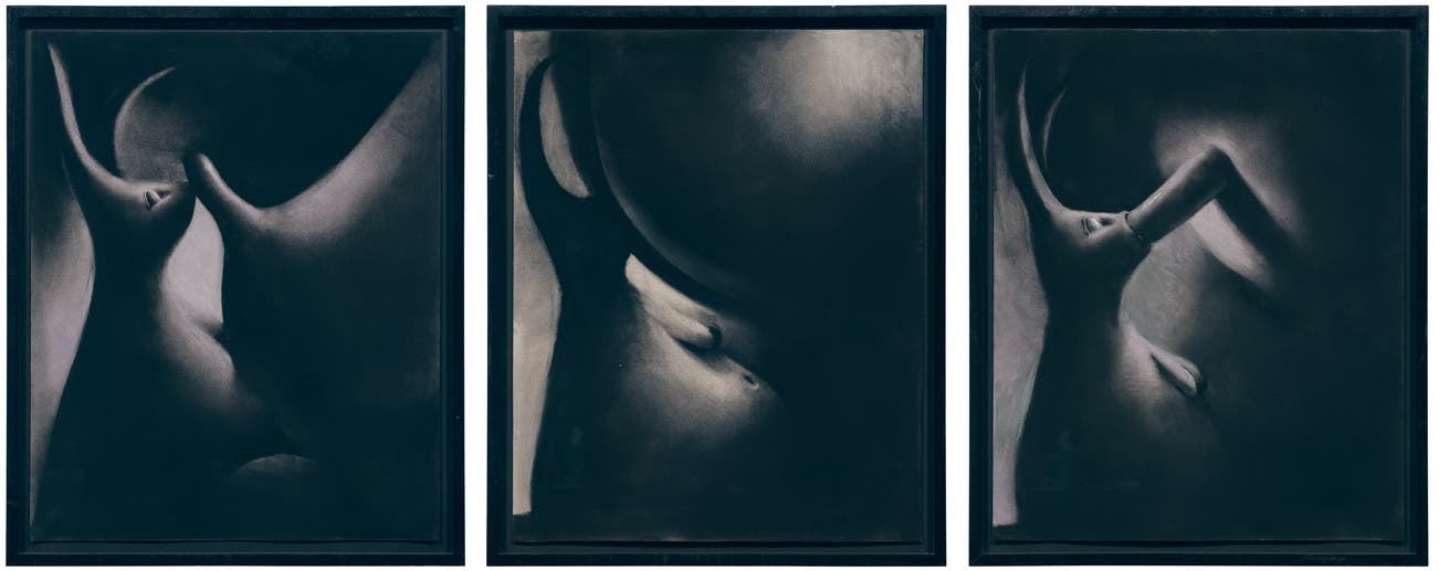 charcoal on paper, in 3 parts