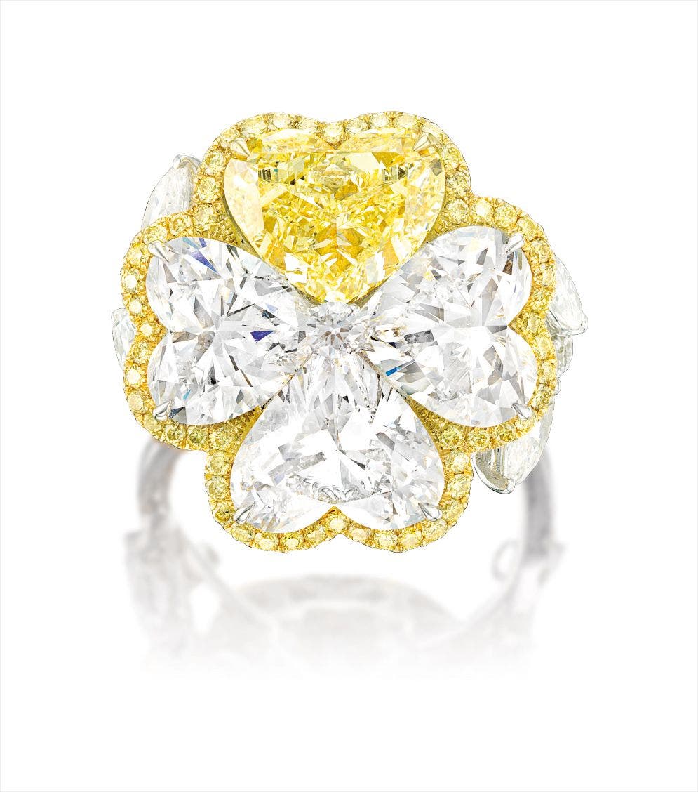 One heart-shaped Fancy Yellow diamond, 3.01 carats