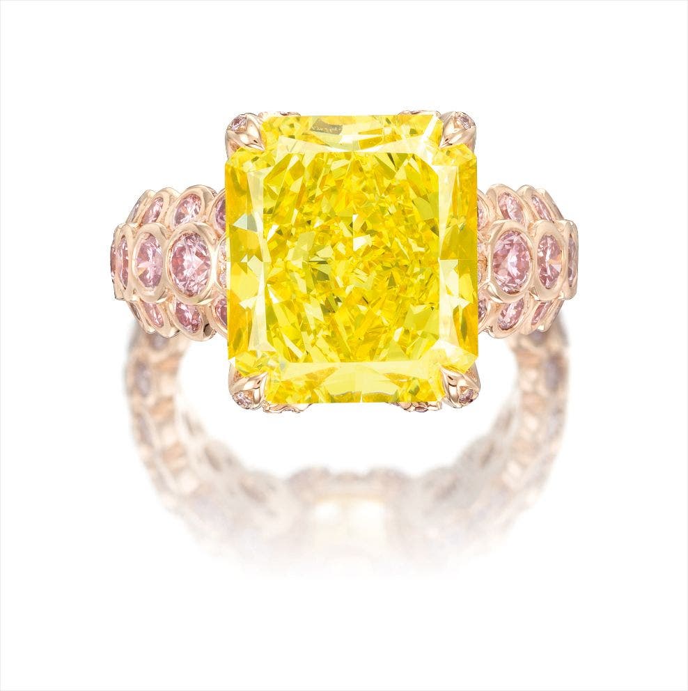 A Fine Fancy Vivid Yellow Diamond and Pink Diamond Ring