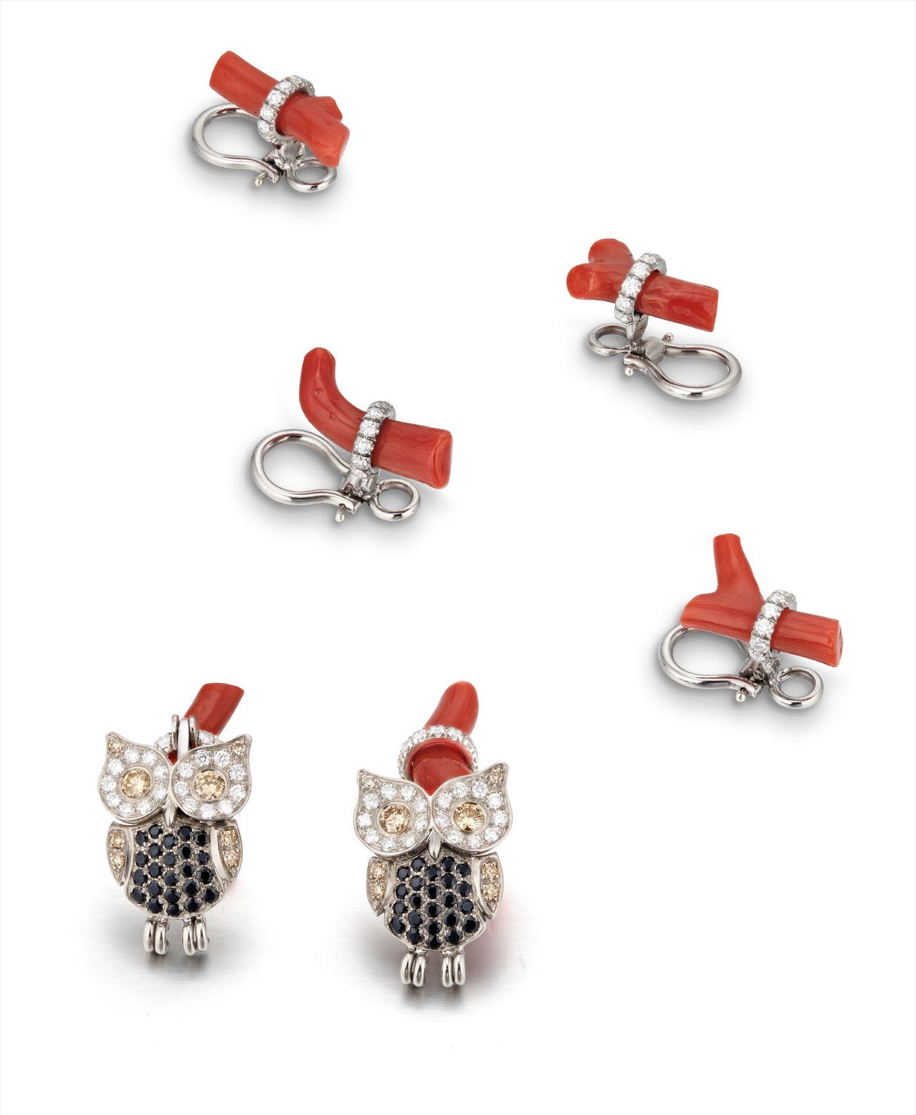 A Brown Diamond, Coral and Spinel 'Owl' Dress Set, Margherita Burgener