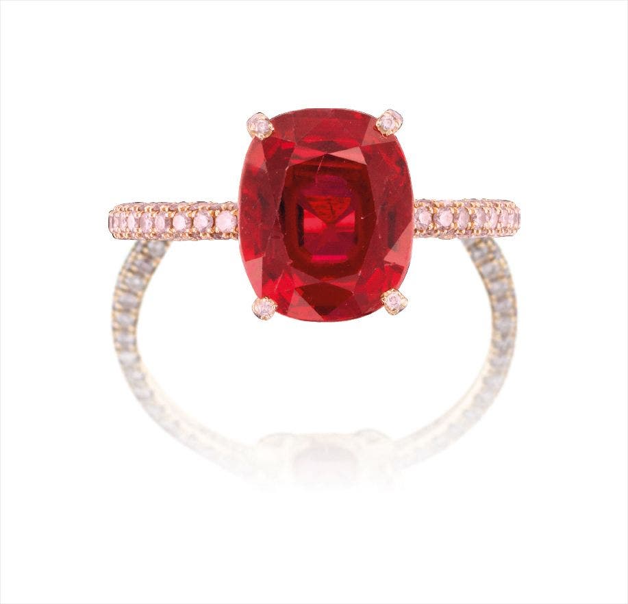 Martin Katz founded his jewellery house in Beverly Hills, California in 1988. He is known as 'jeweller to the Hollywood stars' having jewelled the Hollywood Elite for red carpet premieres and award ceremonies for the past 25 years. Celebrities who have appeared in the master jeweller’s signature micro-pavé pieces include Nicole Kidman, Angelina Jolie and Jennifer Aniston. Katz's high level of craftsmanship, together with his love for rare and important gemstones, have afforded him the reputation of being one of the most innovative American jewellers of the 21st century. The present lot comprises a natural, unheated Burmese ruby which has been certified by the Gübelin Gem Laboratory as being of Pigeon’s Blood hue, unarguably the most sought after designation of colour which is reserved for only a small percentage of Burmese rubies. Its colour, combined with the high transparency of the ruby, make it truly rare gemstone to possess.