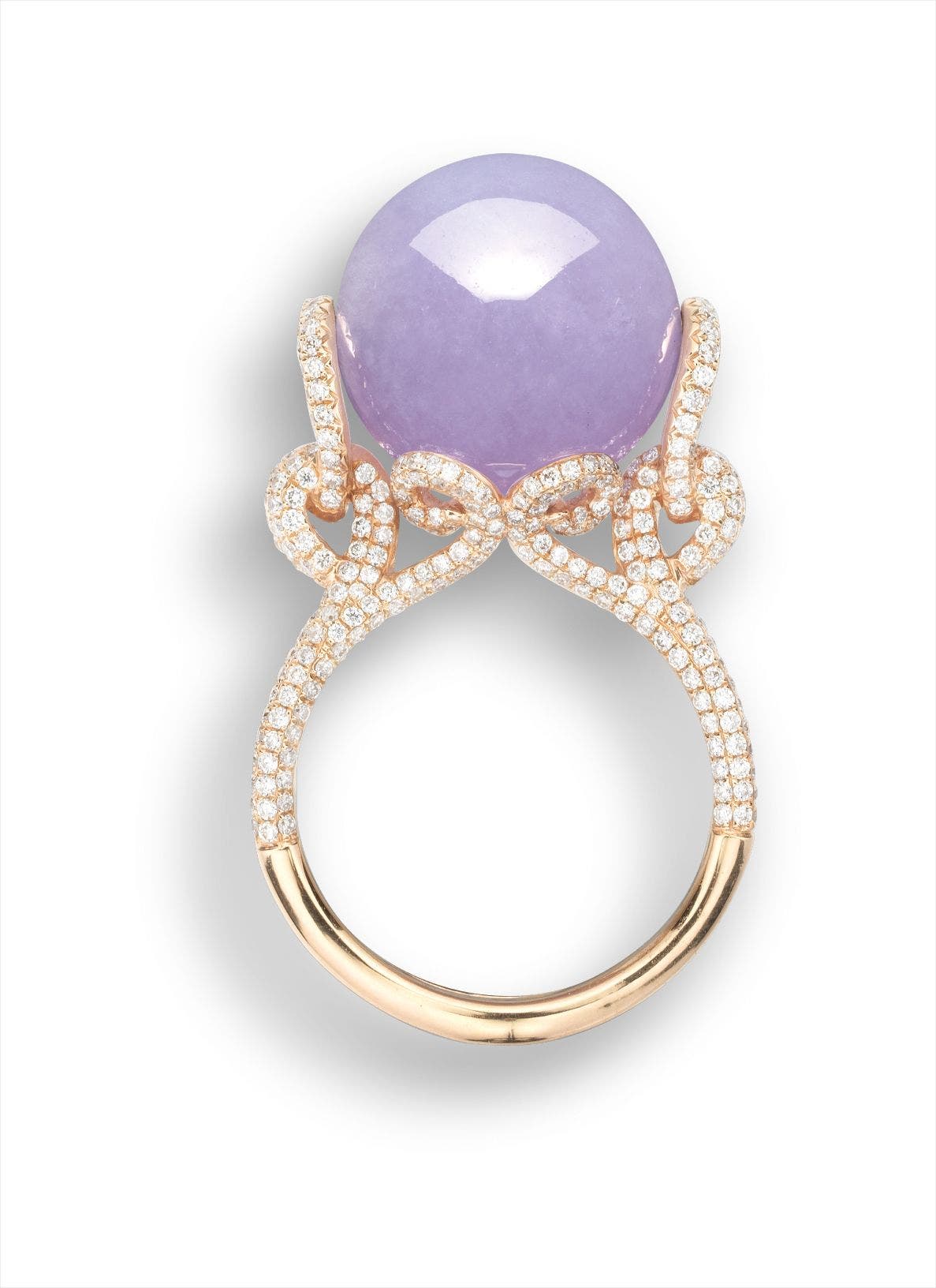One lavender jadeite bead, <em>measuring approximately 14.10mm</em>Diamonds on the side, totalling approximately 1.50 carats18 karat pink gold(Jadeite bead) <em>Hong Kong Jade & Stone Laboratory report numbered KJ 95183, dated 24 March 2017, Type A jadeite, natural colour without any resin.</em>