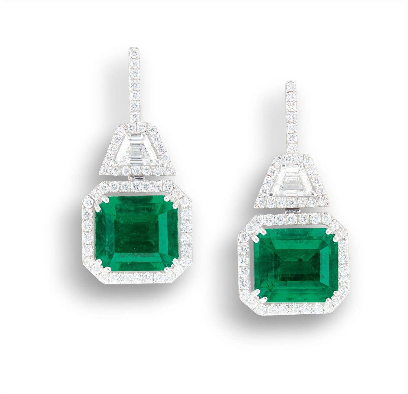 A Pair of Emerald and Diamond Earrings
