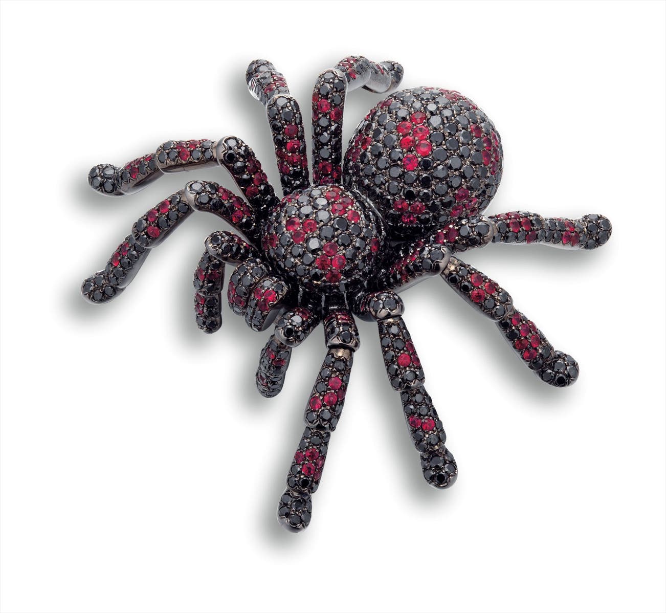 Black diamonds totaling approximately 9.15 caratsRubies together approximately 3.60 carats18 karat blackened gold