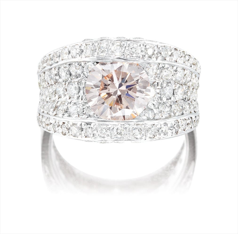 A Fancy Light Pink-Brown Diamond and Diamond Ring