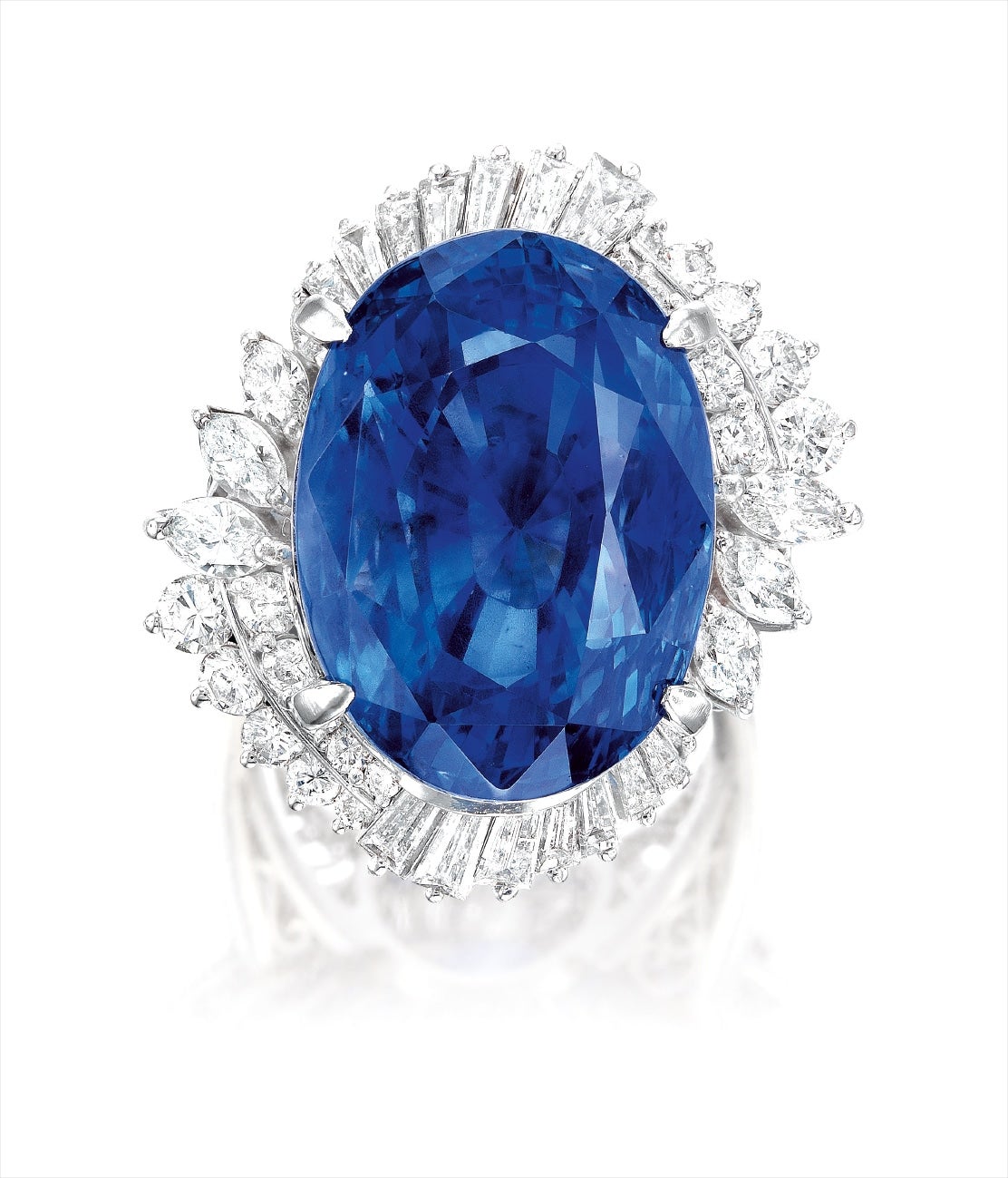One oval sapphire, 36.94 caratsDiamonds in the surround, totalling approximately 2.60 caratsPlatinum(36.94-carat Sapphire)