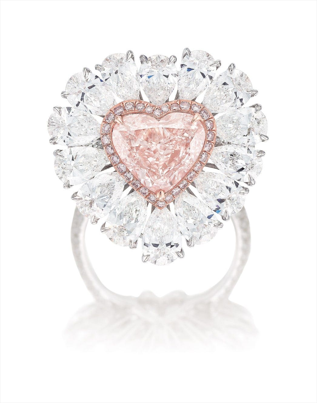 One heart-shaped Very Light Pink Diamond, 2.53 caratsColourless and pink diamonds set in the surround, together approximately 5.30 carats18 karat white and pink gold(2.53-carat Diamond)