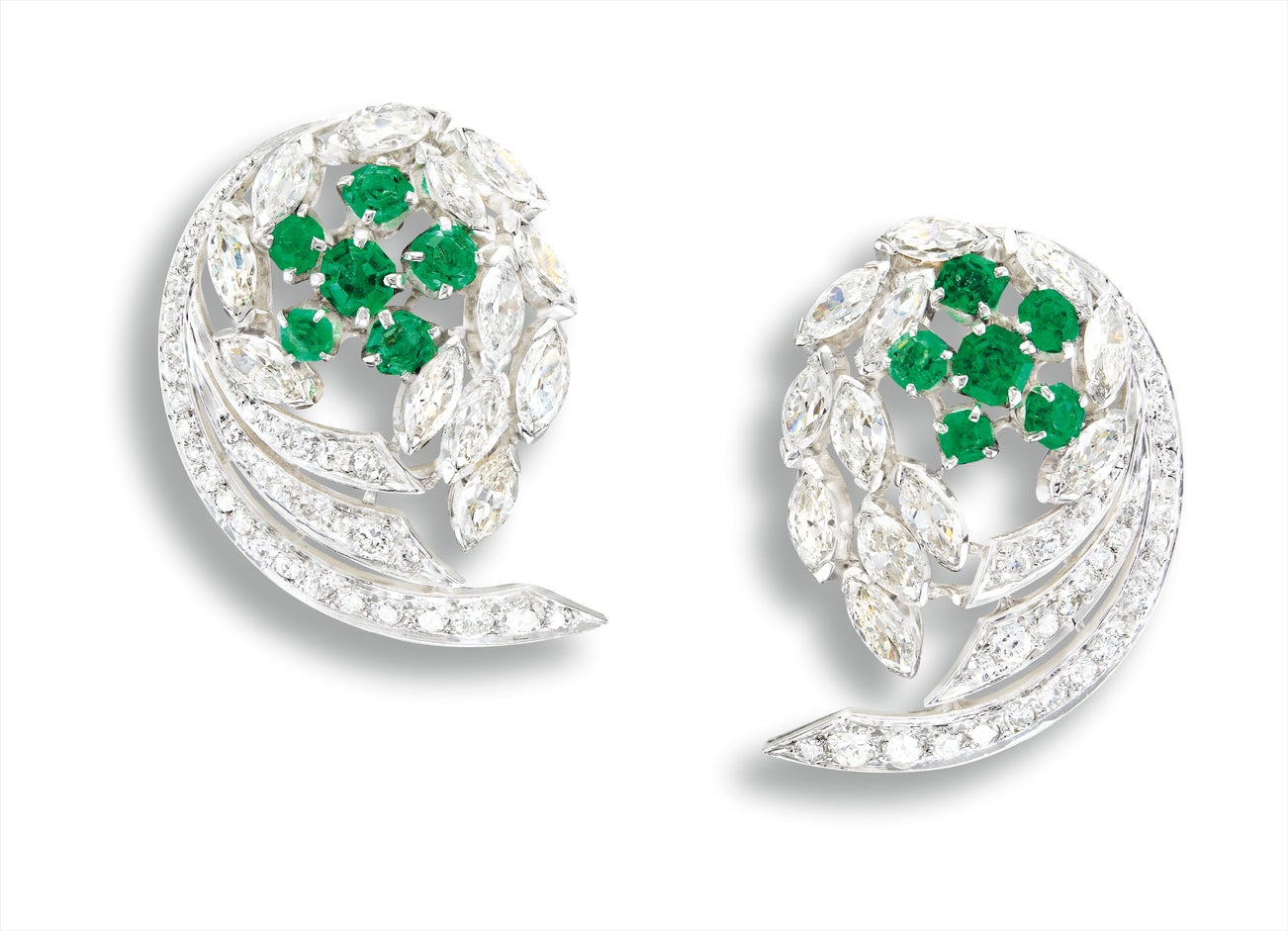 Marquise-shaped and brilliant-cut diamonds, totalling approximately 4.00 caratsOctagonal-shaped emeralds totalling approximately 1.60 caratsPlatinum and 14 karat white gold