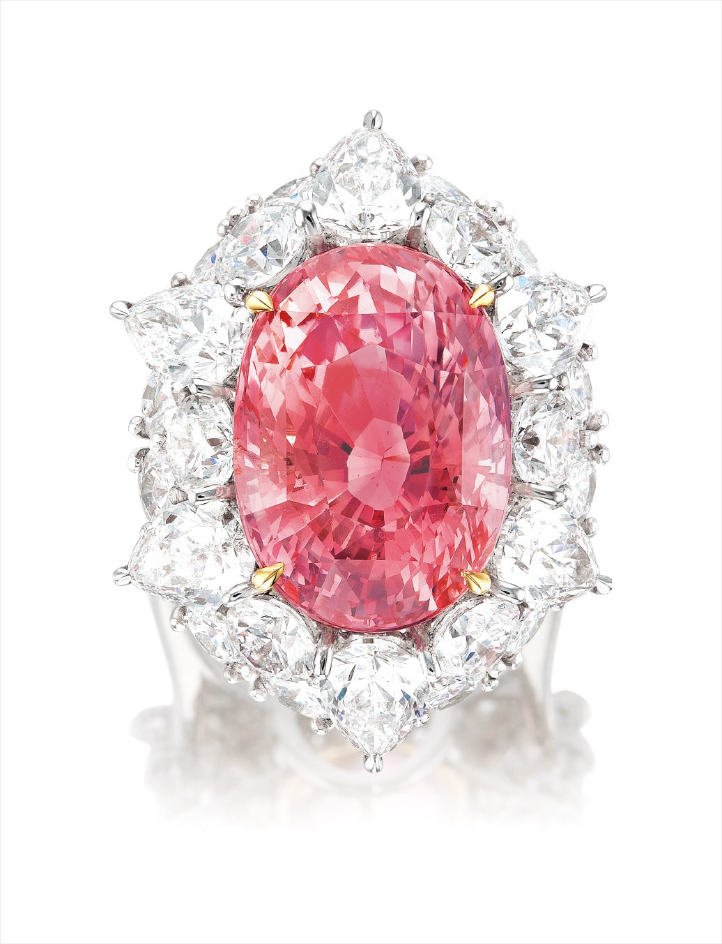 An Exceptional and Rare Padparadscha Sapphire and Diamond Ring