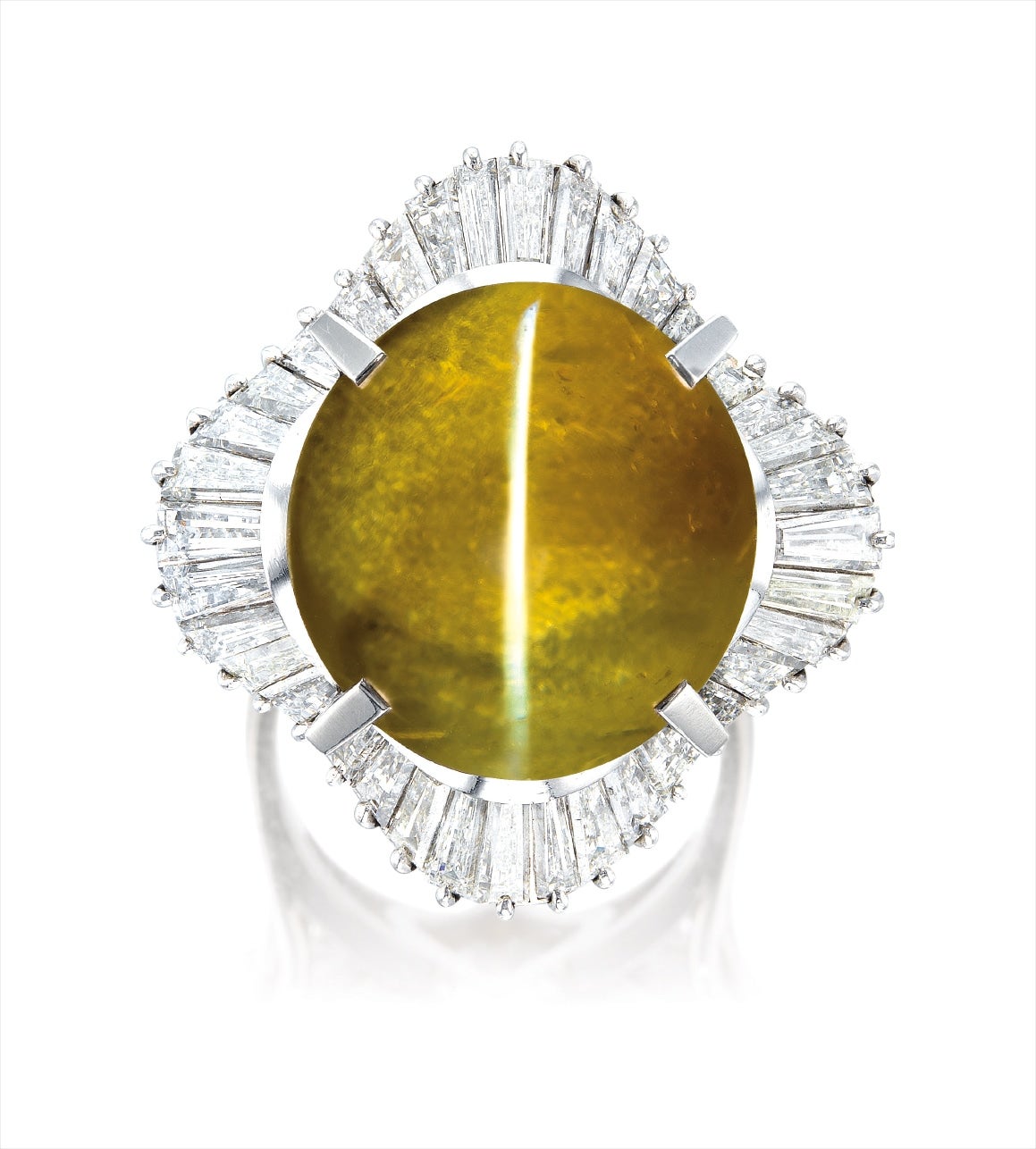 A Cat's-Eye Chrysoberyl and Diamond Ring