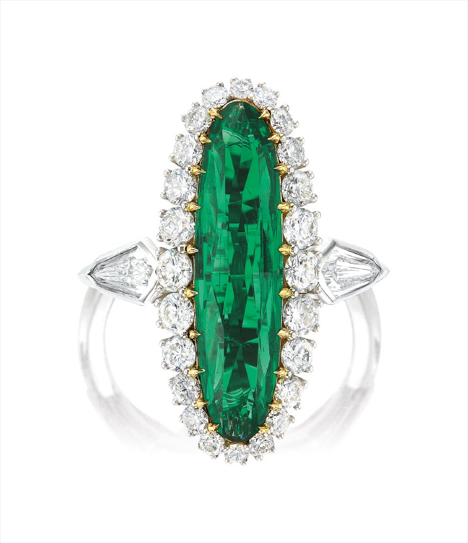 An Emerald and Diamond Ring