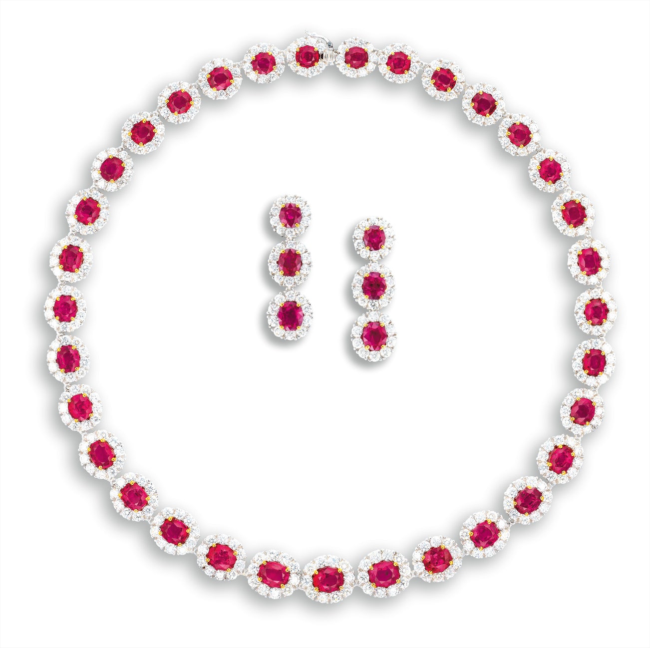 A Ruby and Diamond Necklace, and a Pair of Matching Earrings