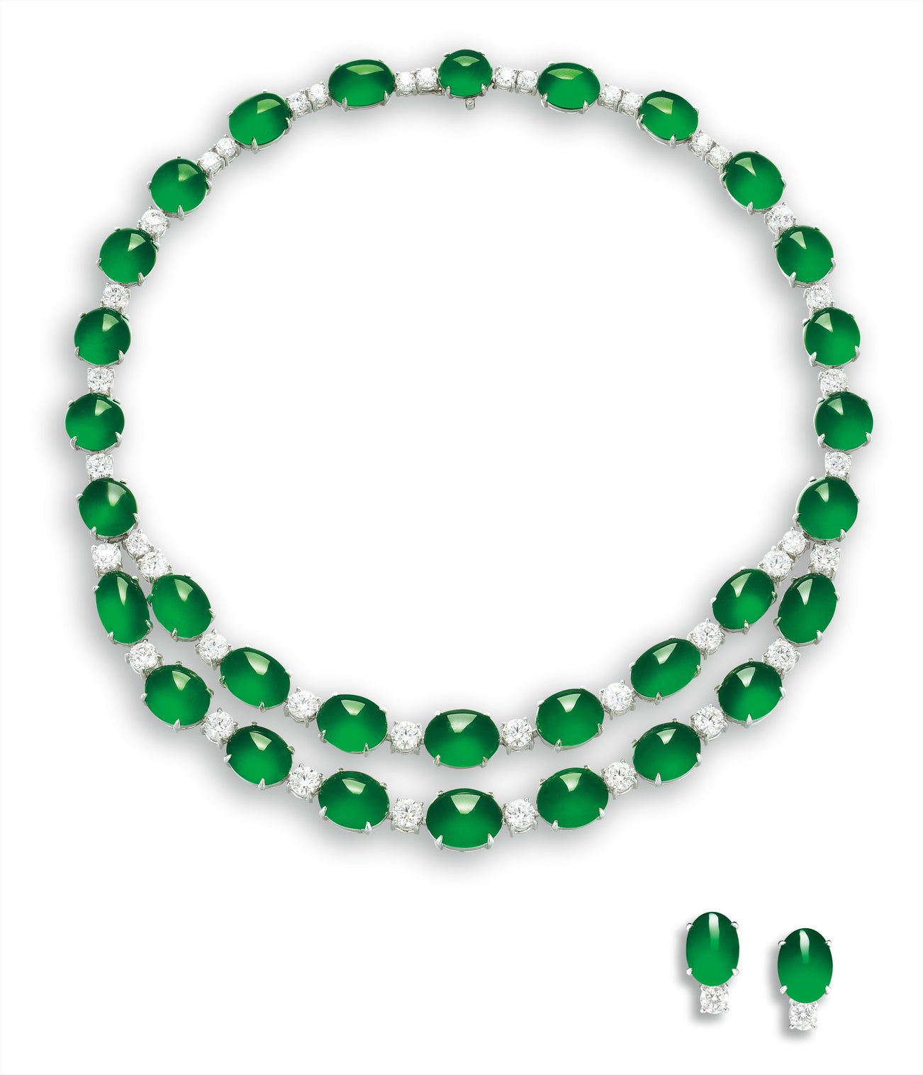 A Very Fine Jadeite Cabochon and Diamond Necklace, and a Pair of Matching Earrings