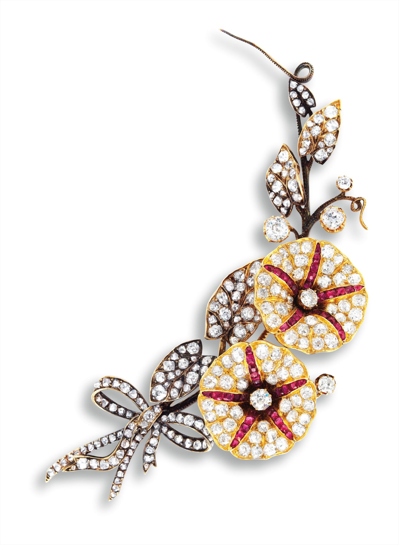An Antique Ruby and Diamond 'Morning Glory' Brooch, Circa Late 19th Century