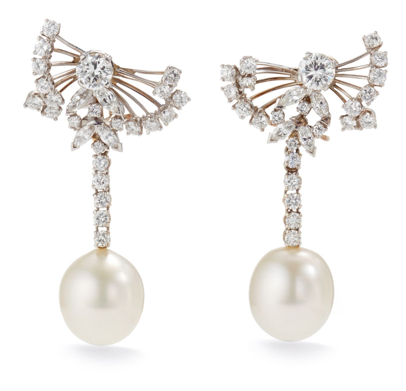 A Pair of Cultured Pearl and Diamond Earrings