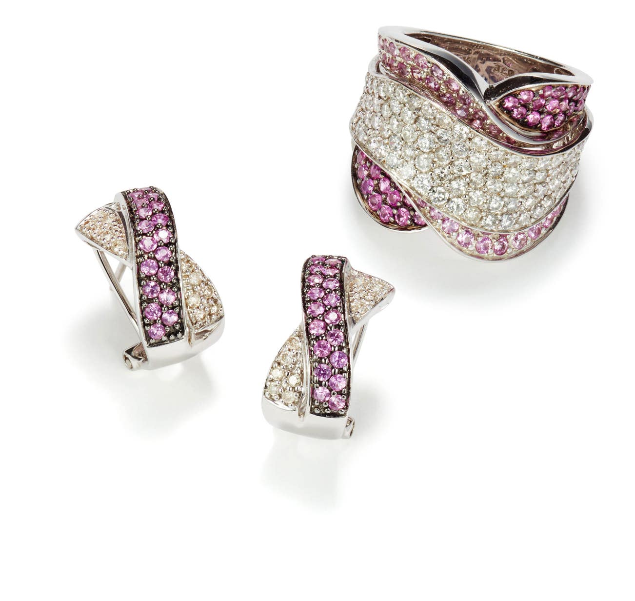 A Set of Diamond and Fancy Colored Sapphire Earrings and Ring
