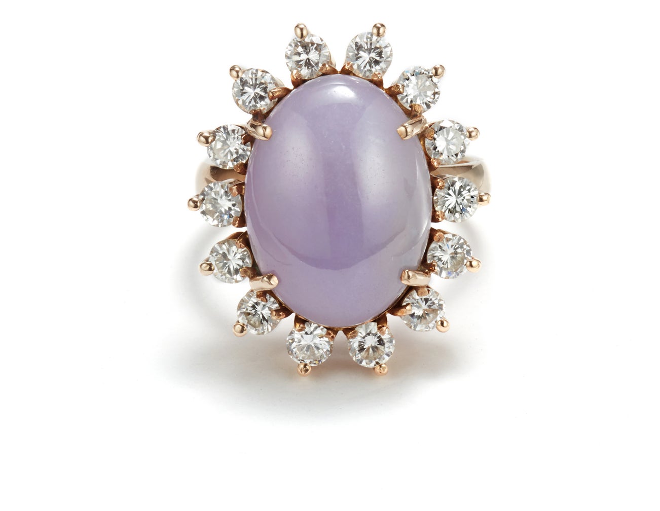 An oval-shaped lavender jade cabochon, approximately 7.50 carats