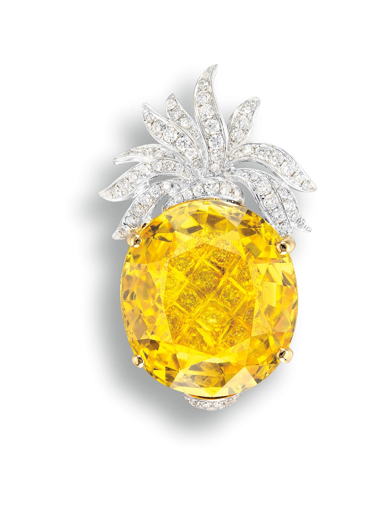 An Auspicious Yellow Sapphire and Diamond 'Pineapple' Pendant