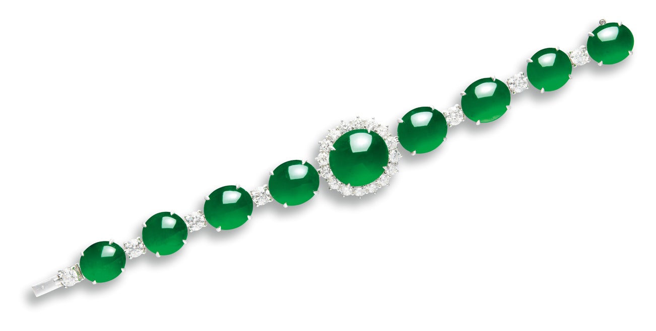A Fine Jadeite Cabochon and Diamond Bracelet