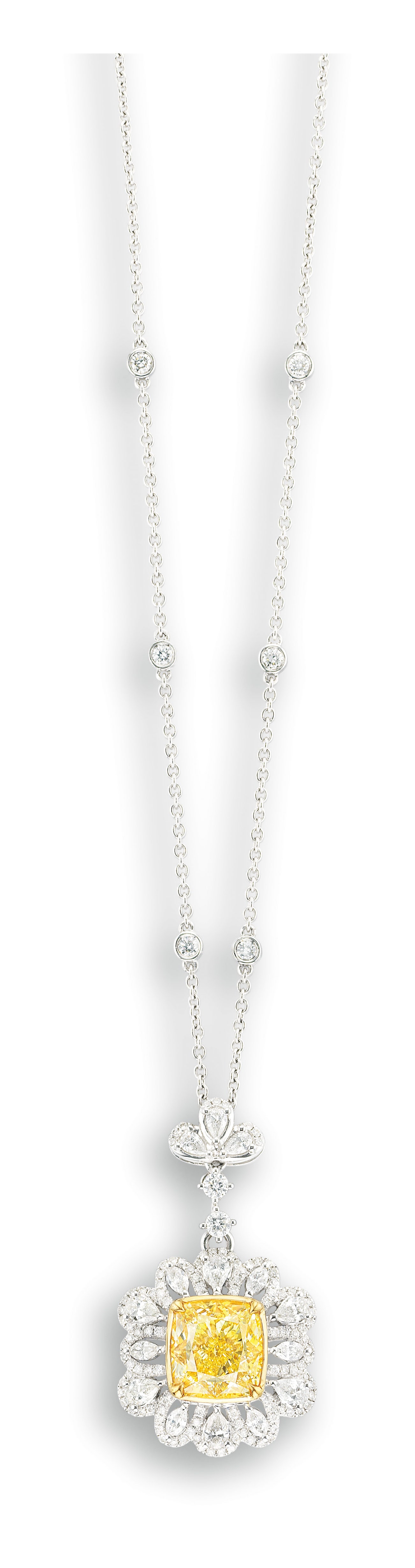 <em>GIA report, numbered 2185283320, dated 6 April 2017, Fancy Yellow colour, VS1 clarity, Excellent Polish. </em><em>Pendant detachable </em>