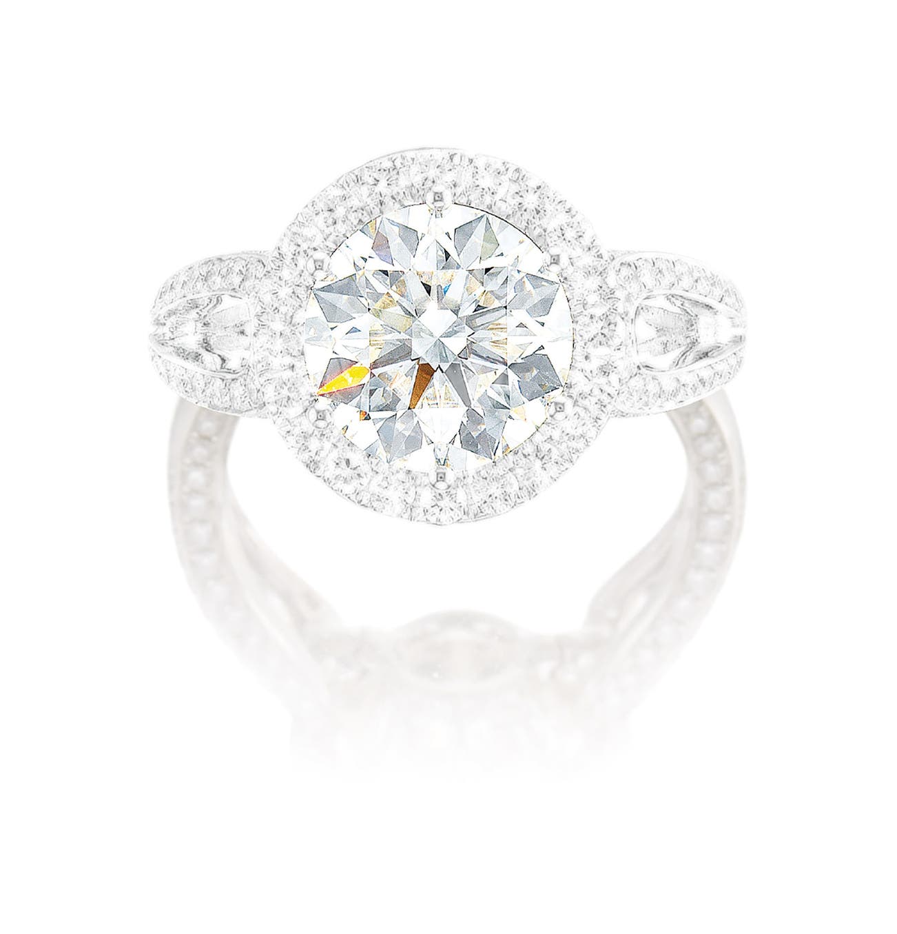 One round brilliant-cut diamond, 3.00 caratsSmaller brilliant-cut diamonds in the surround and on shank18 karat white gold(3.00-carat Diamond)