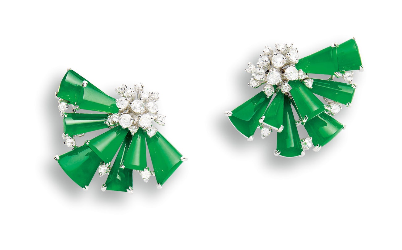 Sixteen tapered Jadeite plaques, <em>measuring approximately 10.30 x 6.32 x 2.38mm to 7.27 x 4.06 x 2.36mm</em>Highlighted with rose-cut diamonds in the middle and on side18 karat white gold(Jadeite plaques)