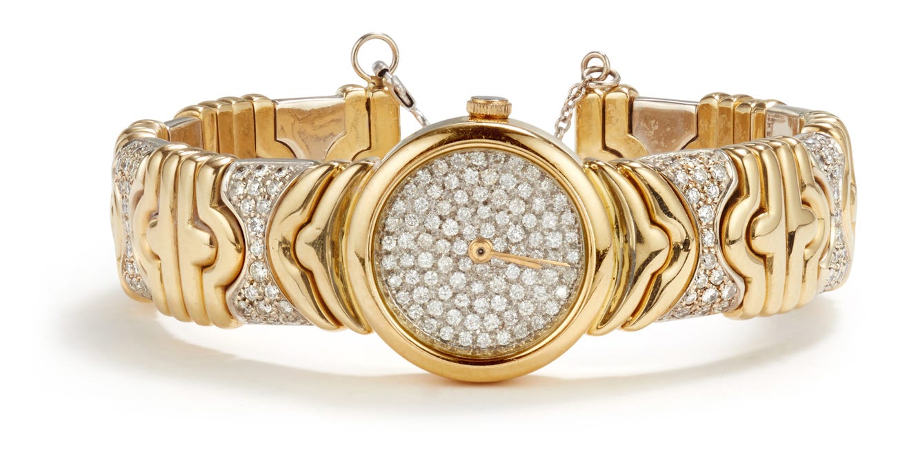 Quartz movement, 18 karat yellow and white gold, approximately 6.00 inches