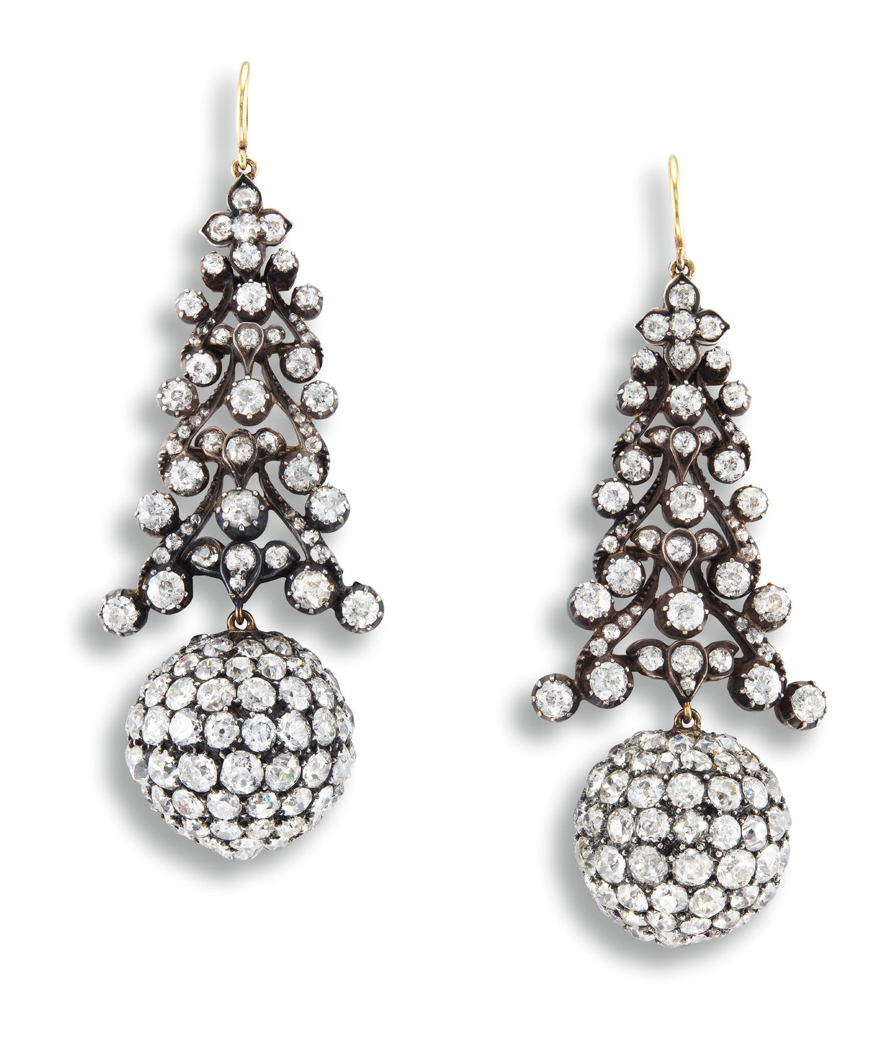 A Pair of Antique Diamond Chandelier Pendent Earrings, Circa 1890
