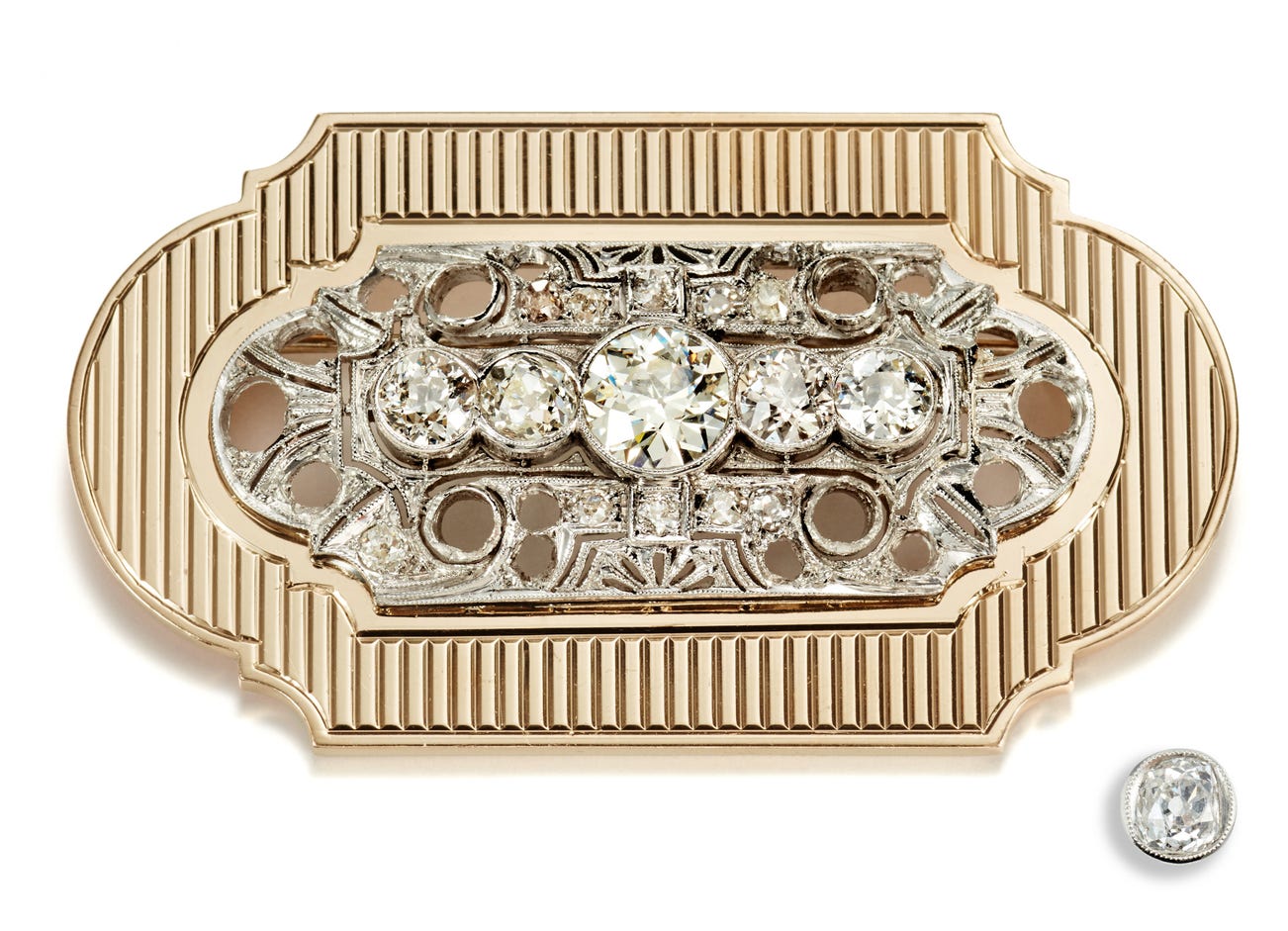 14 karat yellow gold and platinum, approximately 2.25 x 1.25 inches