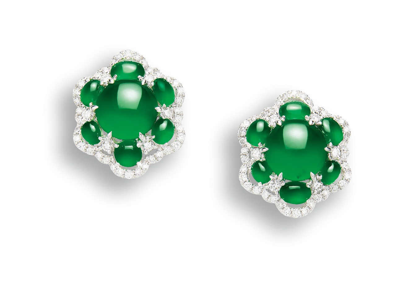 Further embellished by tiny diamonds18 karat white gold(Jadeite cabochons)
