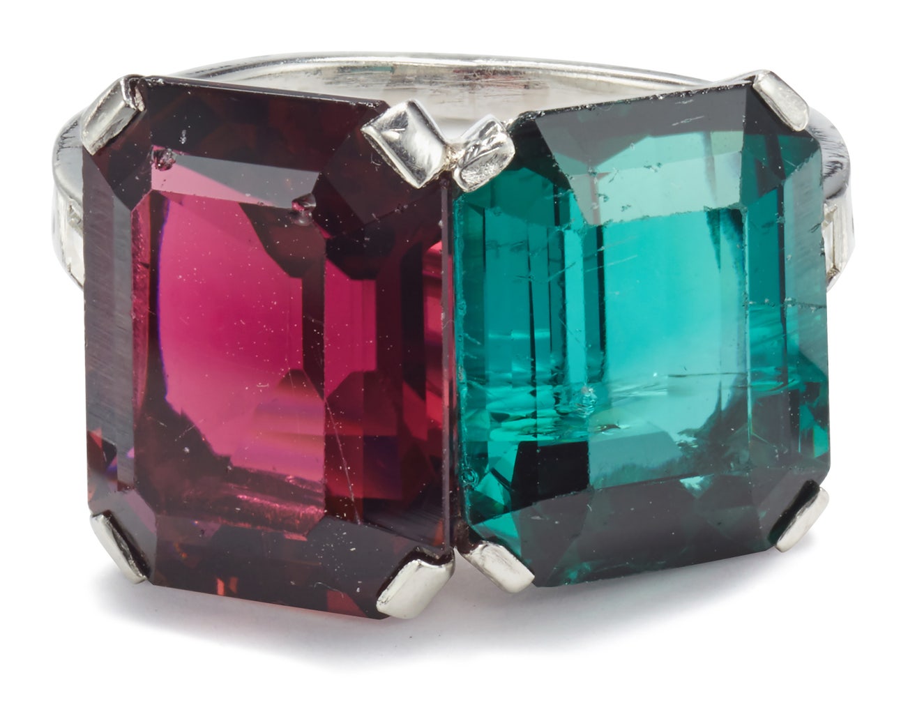 Two rectangular-shaped step-cut tourmalines, total approximately 12.65 carats