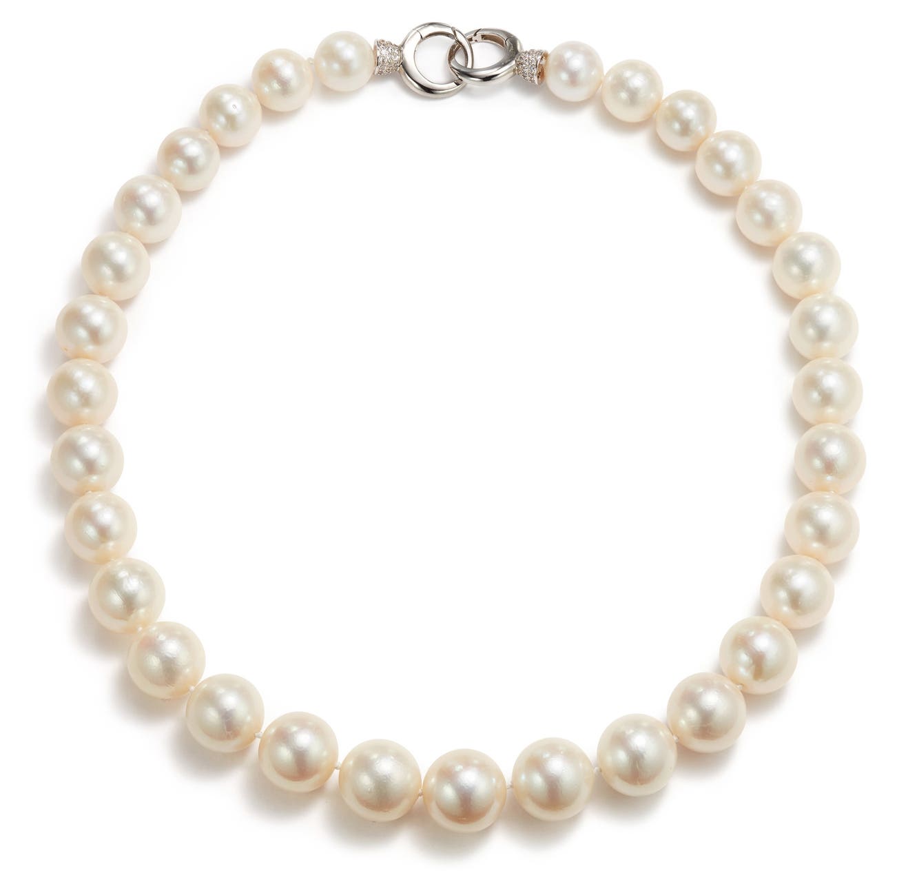 31 round cultured pearls, measuring approximately 11.65mm to 15.12mm