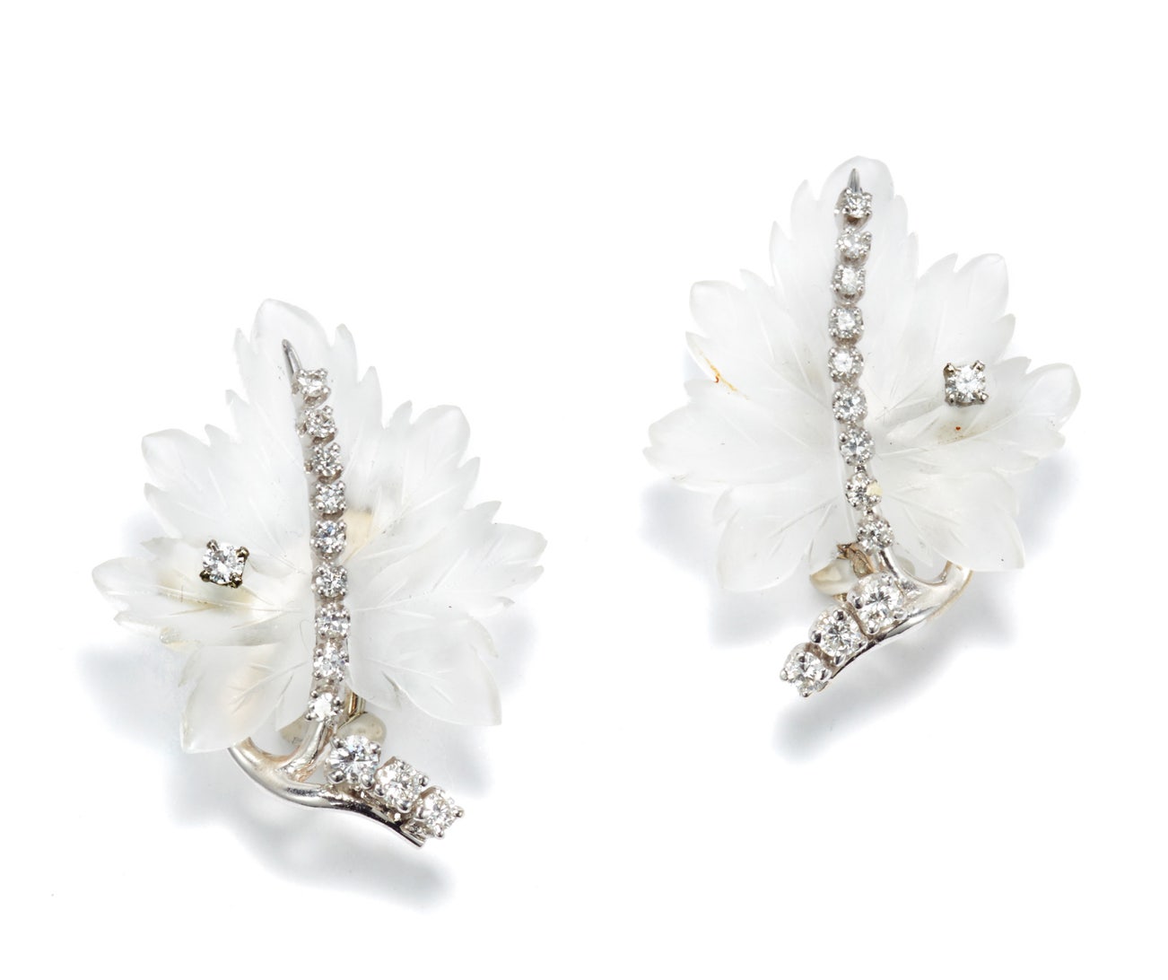 A Pair of Rock Crystal and Diamond Earrings