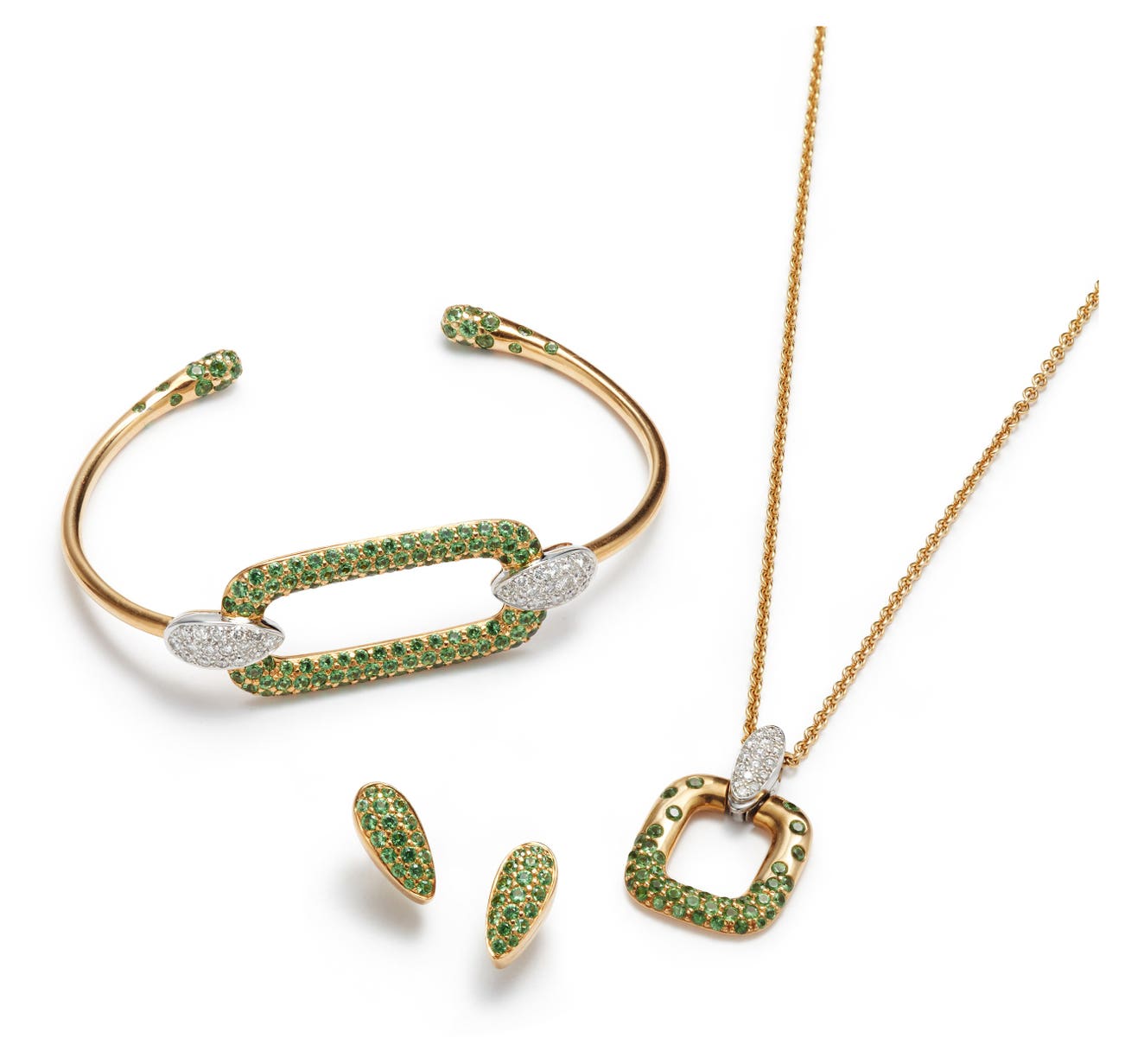 A Suite of Gold, Tsavorite Garnet and Diamond Jewelry