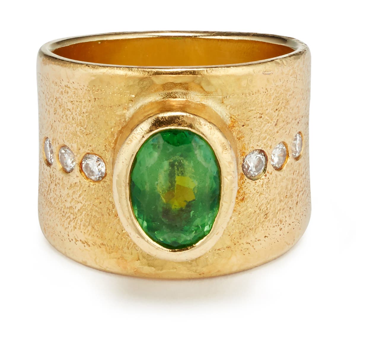 A Tsavorite Garnet, Diamond and Gold Ring